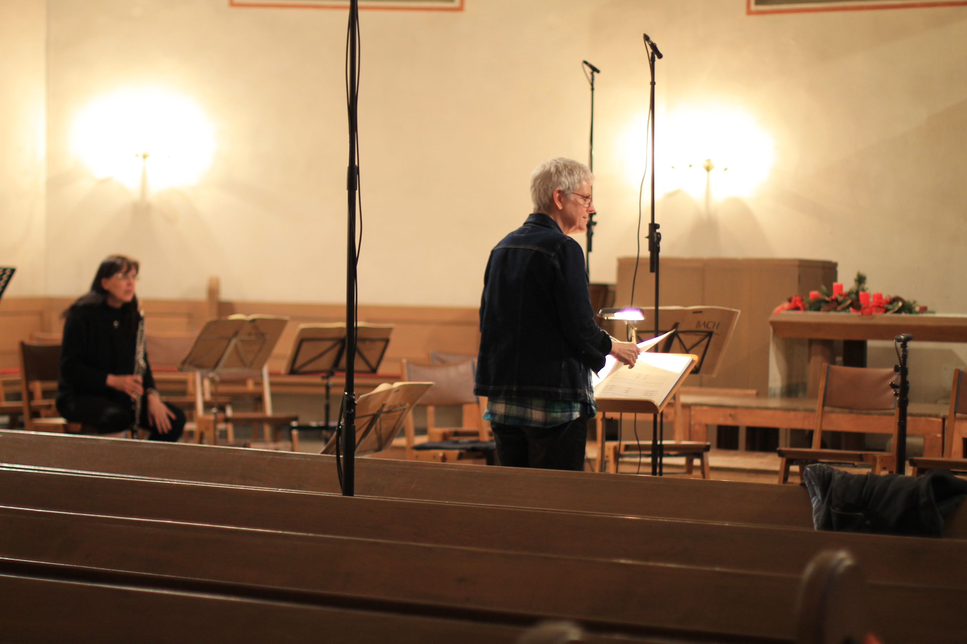 Kantorin Waltraud Hunzing und eine Oboistin noch vor leeren Rängen