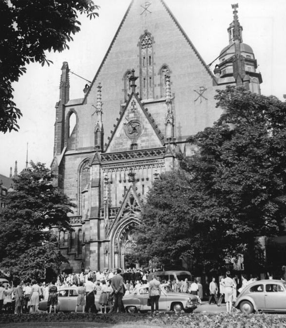 38. Deutsches Bachfest in Leipzig Am 23. Juni 1962 fand in der restaurierten Thomas-Kirche in Leipzig eine Motette des Thomanerchores unter Leitung von Thomaskantor Prof. Erhard Mauersberger statt.