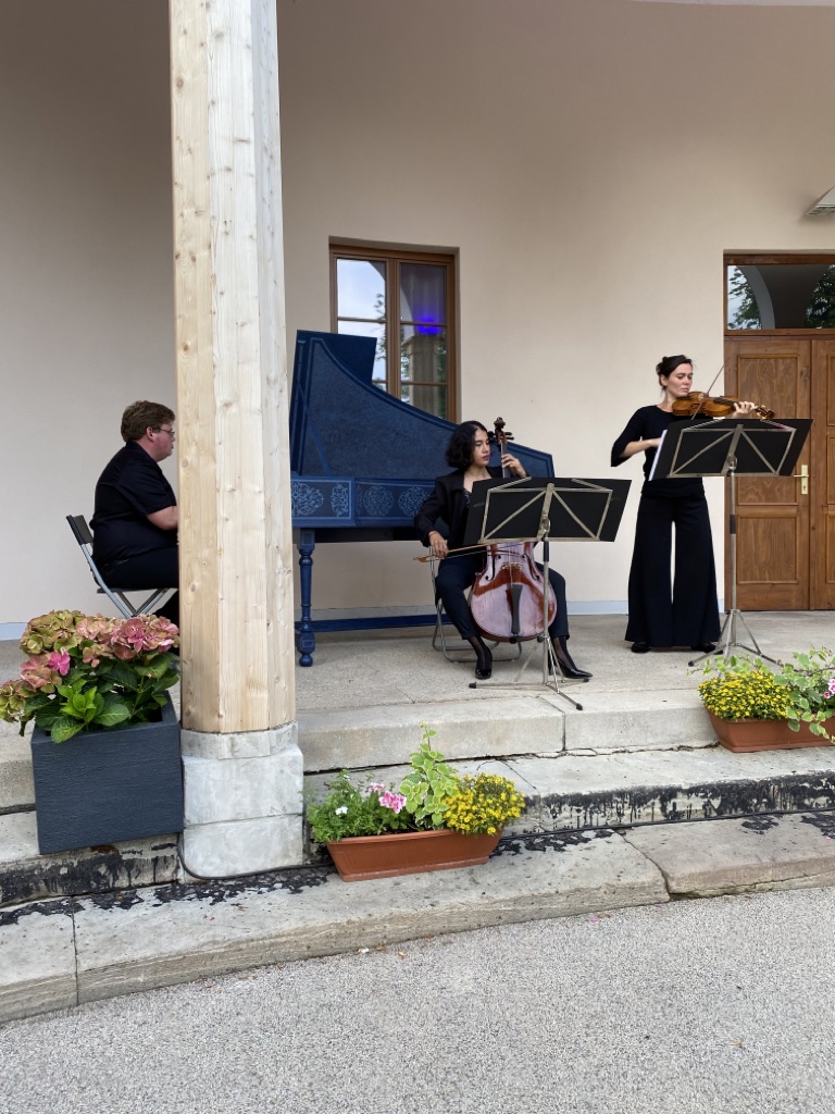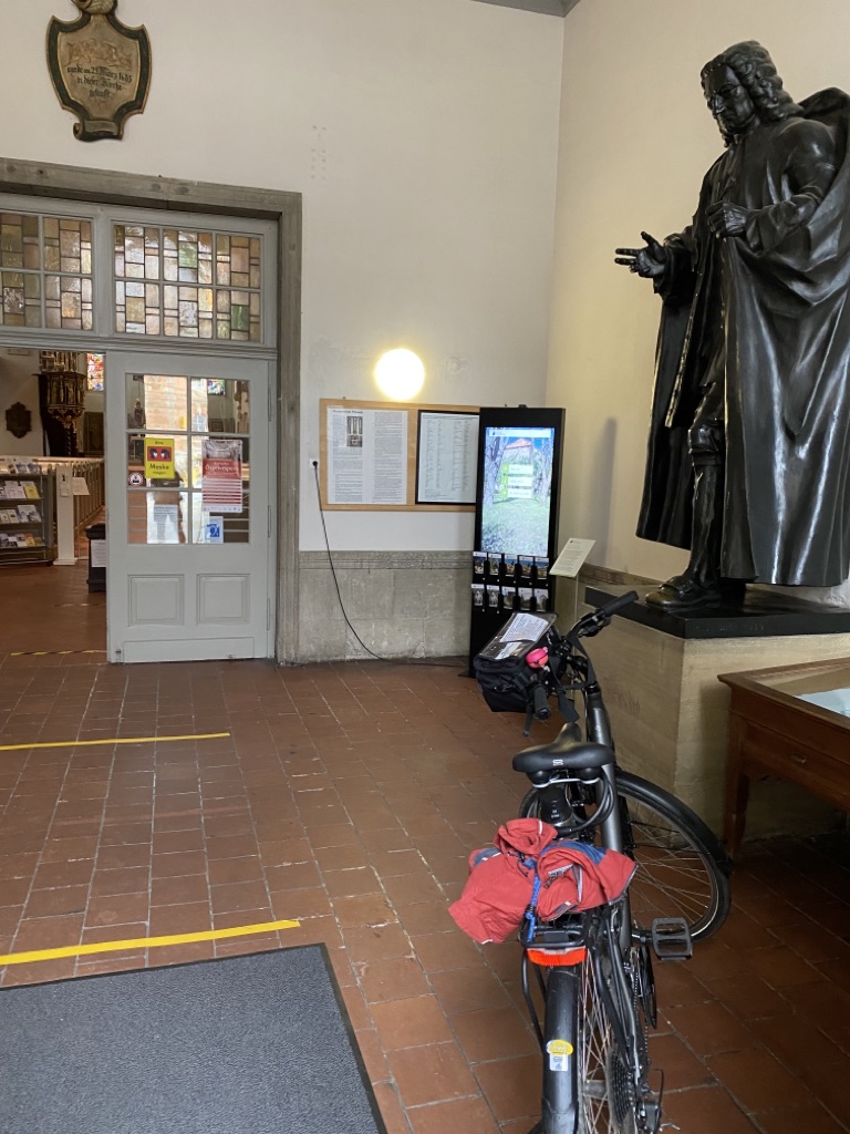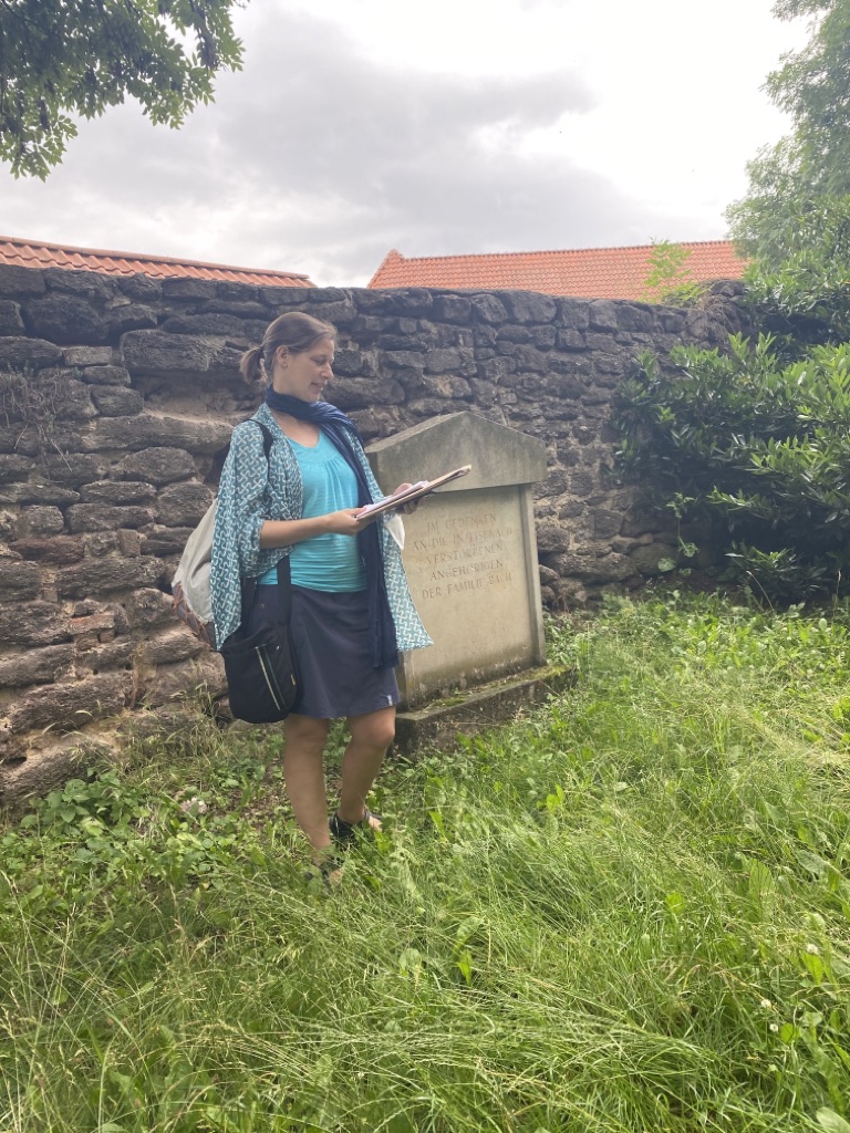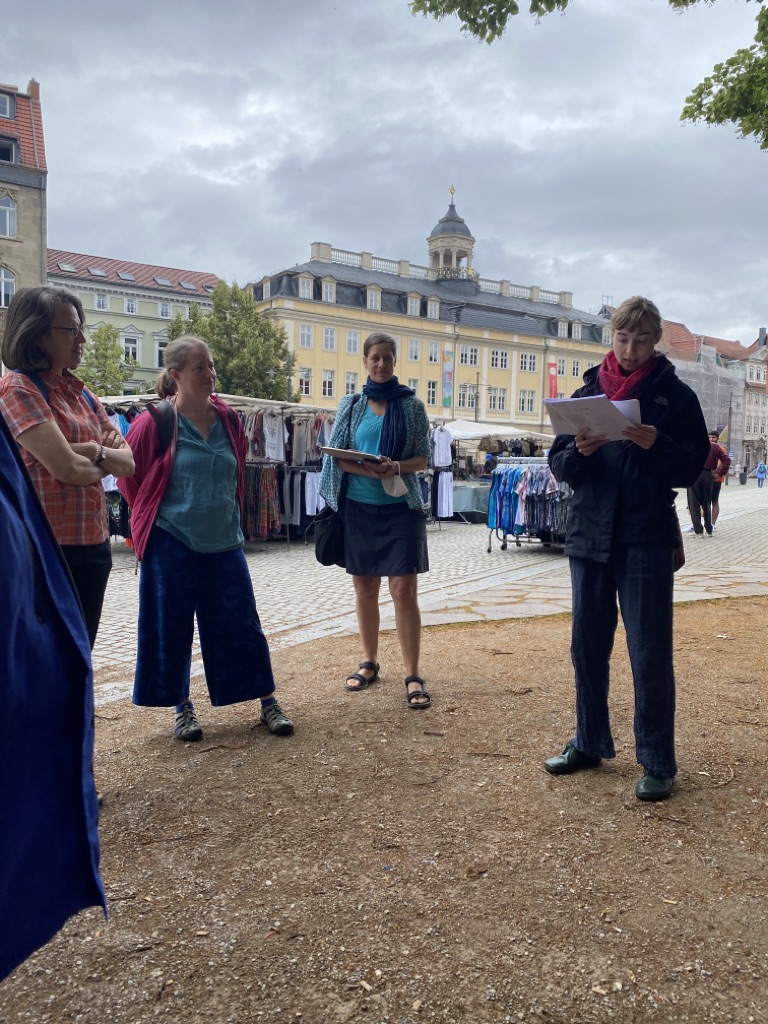 In Eisenach ging der junge Bach zur Latein-Schule, heute noch Gymnasium. Hier hörten wir im stimmungsvollen Innenhof vom Onkel des kleinen Sebastian seine nach Texten aus dem Hohelied komponierte ‚harmlos amouröse’ Motette ‚Meine Freundin, du bist schön!’. Sie führte uns in die barocken Familientreffen des Bach-Clans ein. Denn, wie wir noch bei unserem Besuch in Arnstadt hören werden (7.7.), legten die ‘Bache’ großen Wert auf ihre jährlichen Familientreffen mit deftigem feiern.. Auch ein Blick in den an der Stadtmauer gelegenen alten Stadtfriedhof belegt, dass hier in mehreren Generation ‚Bache‘ als Mütter, Stadtpfeiffer und Cantoren begraben sind und im Leben miteinander versippt waren.