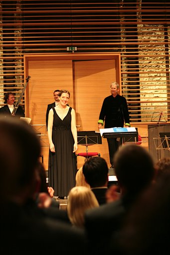 Ein weiterer Höhepunkt erfolgte anschließend mit dem „Lamento“ von Johann Chrisoph Bach (1642-1703), „Ach dass ich Wassers gnug hätte“ mit Clare Wilinson, Alt. Hier nahm der Sir wieder seinen Chefposten ein und spornte mit seinem Dirigat alle Beteiligten wieder zu einer Glanzleistung an.
