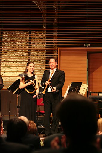 Das war schon ein heftiger Beginn und setzte sich fort nach dem Einsetzen der ersten Tönen im Brandenburgischen Konzert Nr. I. Ungläubig schüttelte ich den Kopf, die Misstöne der Hörner waren zum Anfang unüberhörbar, was zum Teufel hat den Sir geritten, so eine für mich gesehene wundersame Interpretation der Hörner dem Publikum vorzusetzen? Für mich war die junge Anneke Scott und Gavin Edwards mit dem virtuosen und sensiblen Part für das Horn an diesem Abend überfordert. In dem weiteren Werk wurden sehr laute trompetenhafte Töne – das Orchester wurde schrecklich übertönt -, zum letzten Hallali geblasen, es war fast jazzige Musik. Ich konnte beobachten, dass die Geigerin Kati Debretzeni ob dieses Spektakels ein süss-säuerliches Gesicht bekam und das Publikum vor mir ungläubig darüber den Kopf schüttelten. Das grenzte fast an Jahrmarkts-Töne, leider, gerade dieses Werk bedarf eines sensiblen Spiels des Horns und dann so etwas…!!
