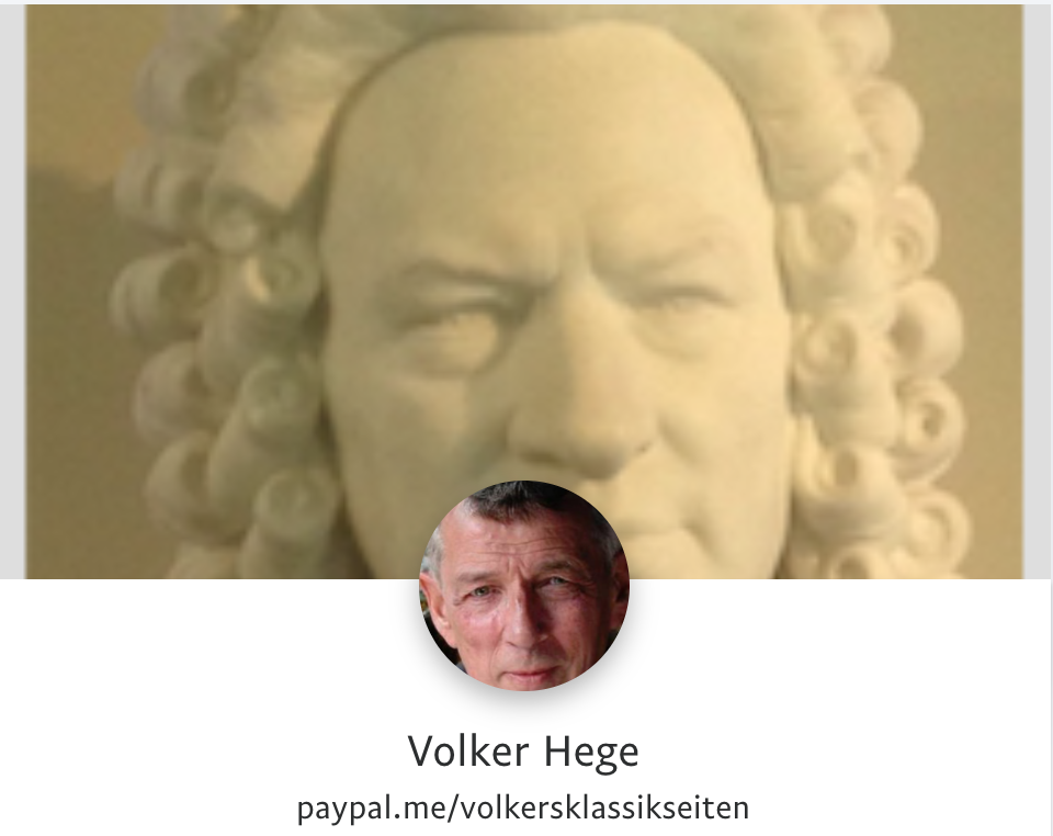 Ich bitte wieder um eine Spende für Volkers Klassikseiten J. S. Bach