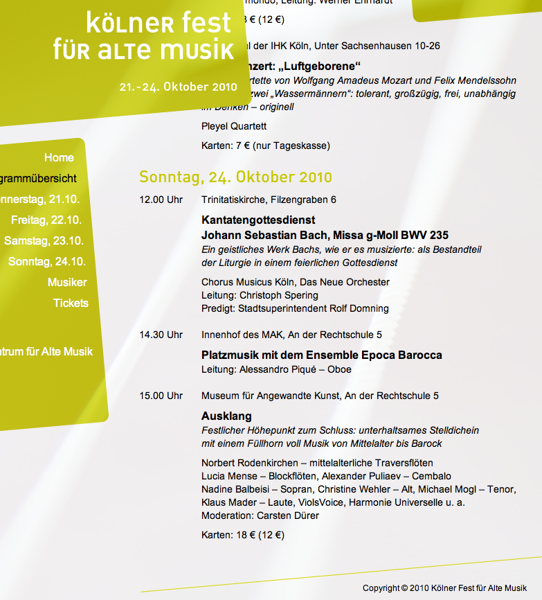 Froh ist man von Veranstalterseite über die Kooperationen mit dem WDR. Für den Zusammenschluss der Szene-Interessen in einem „Zentrum für Alte Musik“ sucht man im Gespräch mit den Kulturpartnern noch nach einer passenden Rechtsform. Eine Vereinsgründung ist im Gespräch.