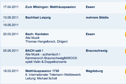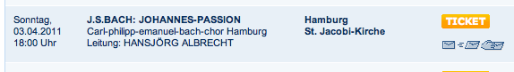 wie bereits in den vergangenen Jahren möchte ich auf Konzert-Termine aufmerksam machen, die Passions-Musik von J.S. Bach im März bis April 2011 – enthalten.